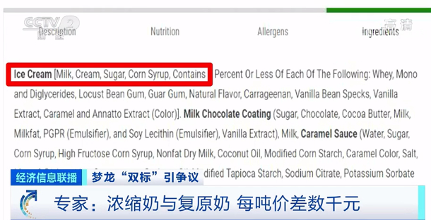 对于曾锡文提到的在欧洲等国家用浓缩奶制作梦龙冰淇淋,在中国等国家用复原奶,专家表示,成本或是其重要的考量因素。