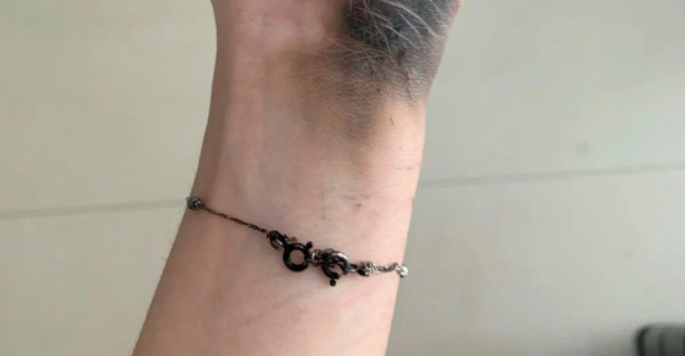 原标题:女子戴手链拔插头竟意外触电,手掌黑了一大片