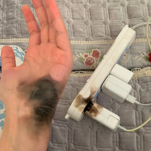 女子戴手链拔插头竟意外触电,手掌黑了一大片