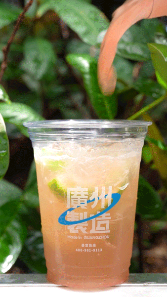 经过三大步骤后的苦瓜柠檬茶,柠檬的酸甜与苦瓜进行中和,柠檬清香、苦瓜甘味,喝起来超清爽,随便一吸,苦瓜肉瞬间入口!受“热气”的广东人逛gai人手一杯!