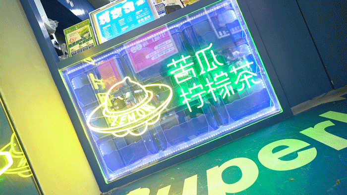 老板装修很有创意,酷炫的设计风格,科技感十足的荧光屏,让人忘不了这家店!现¥3.8/杯,带你爱上这个夏天!