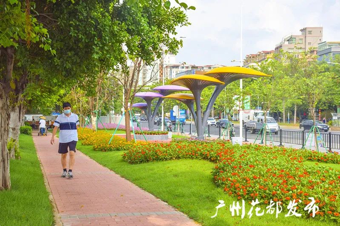 位于花都区迎宾大道金菊花小区北门,绿地面积4800平方米,设置特色花境,融入景观小品,供市民打卡游玩,为繁忙的都市生活增添好去处。
