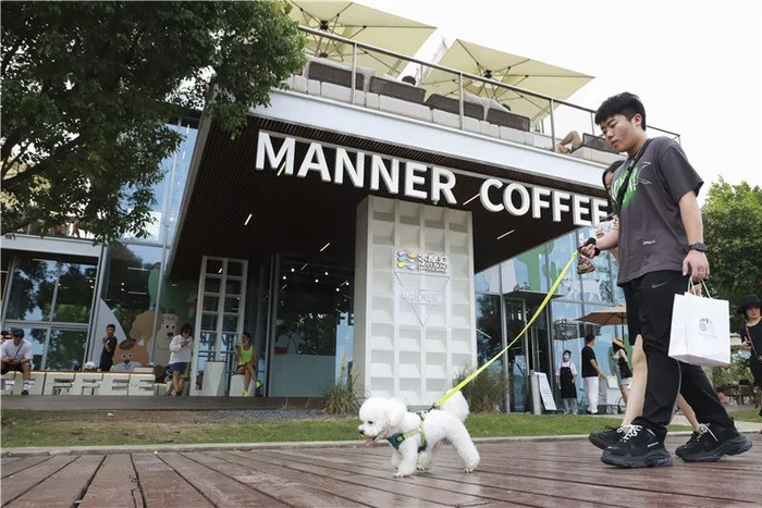继去年底星巴克在徐汇滨江开出宠物友好店后,Manner咖啡近日也在这里开出首家宠物友好店。吹着江风,点一杯咖啡,狗狗也有它专属的爪布奇诺和无浓缩美式哦。