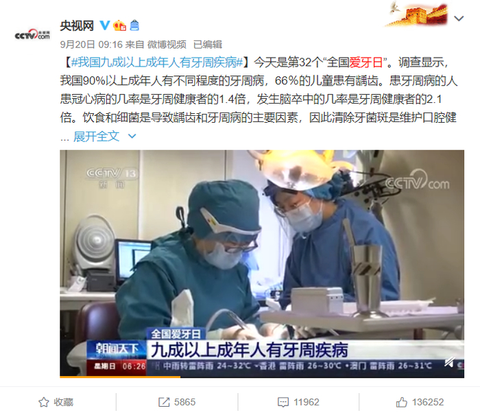 ① 央视网:预防牙齿疾病关爱口腔健康. http://ssnew.cn/Fi1jO
