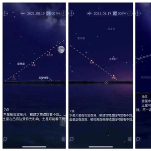 19日晚7点左右,金木水火土五颗行星都出现在了地平线以上。不过,几个行星在天空中的张角很大,形成了广义上的“五星连珠”。
