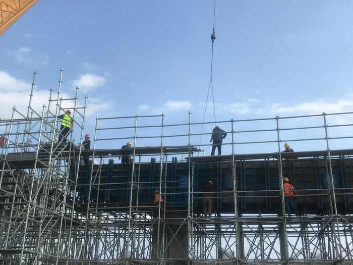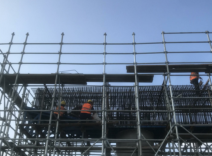 “长阳路是房山一条重要的交通干线,高峰期车流量很大。”肖博告诉记者,如果采用最初方案中的钢混叠合梁,需要出动大型机械封路施工,为了将交通影响降到最低,最终选择采用混凝土现浇梁。“等于是在门洞支架上浇梁,门洞下可以照常跑车。”肖博介绍,四工区紧临房山区长阳镇中心地带,周边商业繁华,施工范围内需拆改防护的建筑物、电力线路、通信线路、燃气管道、给排水管路较多,工作量较大。