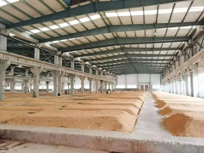 在口子酒厂,翻曲师傅们反复重复这样的动作,平均每人每天要翻8吨的曲量。除了上下翻曲,工人们还要凭借经验根据情况敞开门窗、排湿降温,这样才能有益于微生物的生长繁殖。