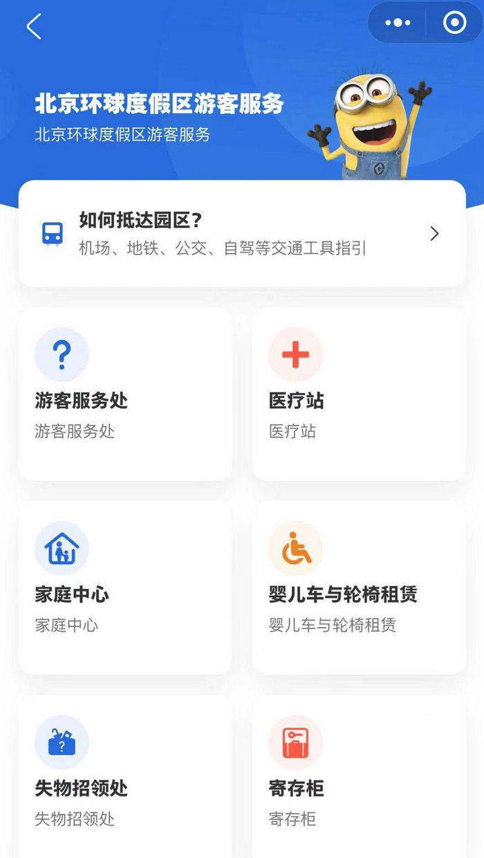 目前,北京环球度假区微信小程序已经启动。新京报记者登录看到,小程序包括主要娱乐项目介绍、地图、游客服务、预约等功能。其中,游客服务可提供交通、急救处、问询处、婴儿车轮椅租赁、失物招领等信息及服务。持有北京环球影城门票的游客,可以在小程序上预约入园。