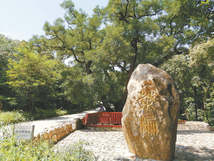 东茶棚坐落于陈家沟以东,青龙山以南,属于福惠寺下院,所以名为茶棚,实际上是一座寺庙。据考证,那是一座屋舍三间的民间庙宇,庙前有井,可汲水沏茶。如今的东茶棚遗址,屋舍与水井荡然无存,唯余两株高大粗壮的古槐,在过往的山风中诉说着记忆深处的陈年旧事。遗址北边崖壁上刻有“普渡桥”三个大字,落款处依稀可见“乾隆三十四年修建,住持源方”字样。由此推测,这座茶棚的繁盛时期或许在清代乾隆年间。现在,这里是西山国家森林公园的一处景点,除了标志性的两株古槐,还有一块褐色巨石,正面镌刻着“茶棚”二字,背面是东茶棚的简单介绍。巨石旁边立有一块金属标牌,上面写着“东茶棚遗址”。