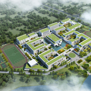 学校坐落海口秀英区美安科技城占地面积约150亩,建筑面积约11万平方米。学校建筑主体采用中轴对称布局,多进院落递进,凸显学院气质。楼体之间融入骑楼、风雨连廊、底层架空、半室外空间、遮阳挑檐等建筑元素呈现出学校灵活有机的教学理念,开放的现代教学模式。