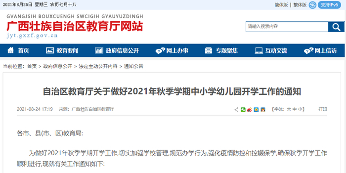 自治区教育厅在官网发布