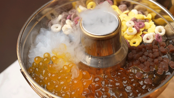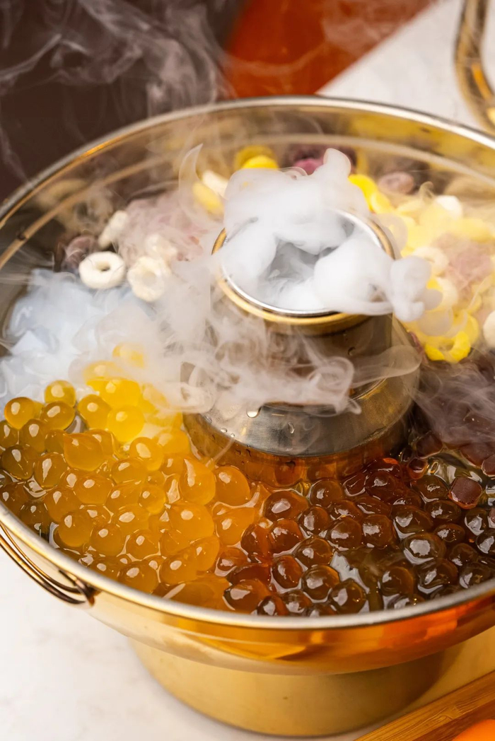 这一份金玉满堂“奶茶火锅”,一上桌就被震惊到!这份量和颜值简直是奶茶界里的天花板!珍珠、脆片、红豆、椰果...超多种料!仙气飘飘的、再倒入奶茶!四个人都吃不完!