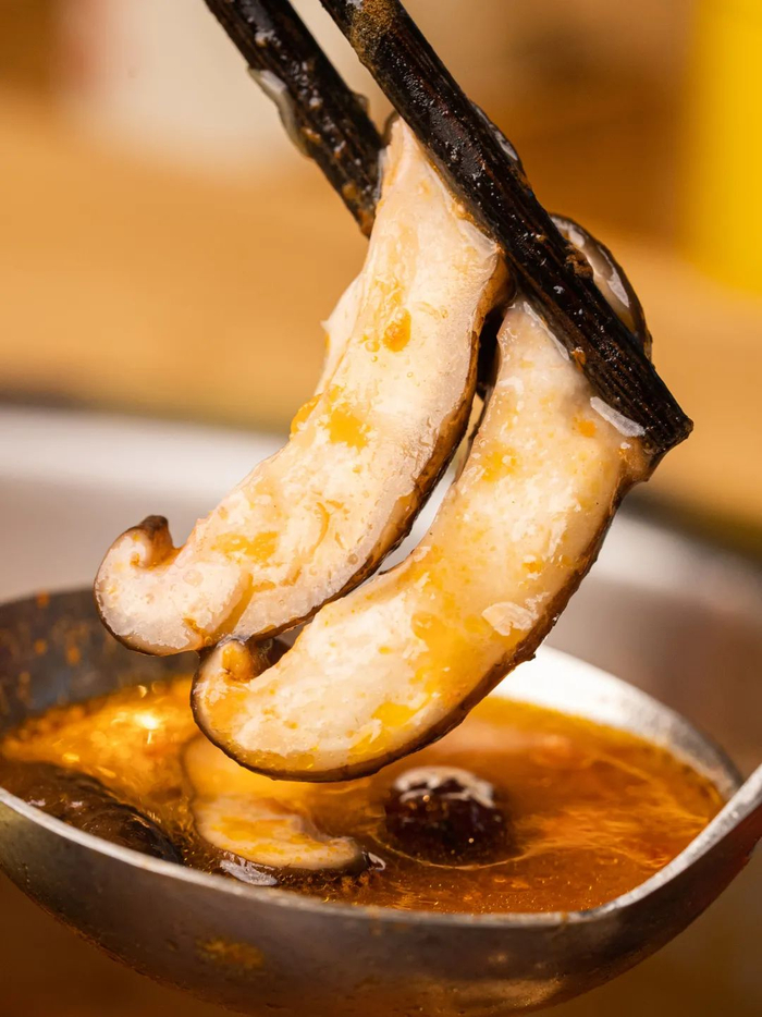 在麻辣牛油锅中涮上几秒,等羊肉卷变色后就可以大快朵颐。没有一丝膻味,肉吸满了麻辣的汤汁,蘸上成都的经典油碟,又嫩又香!