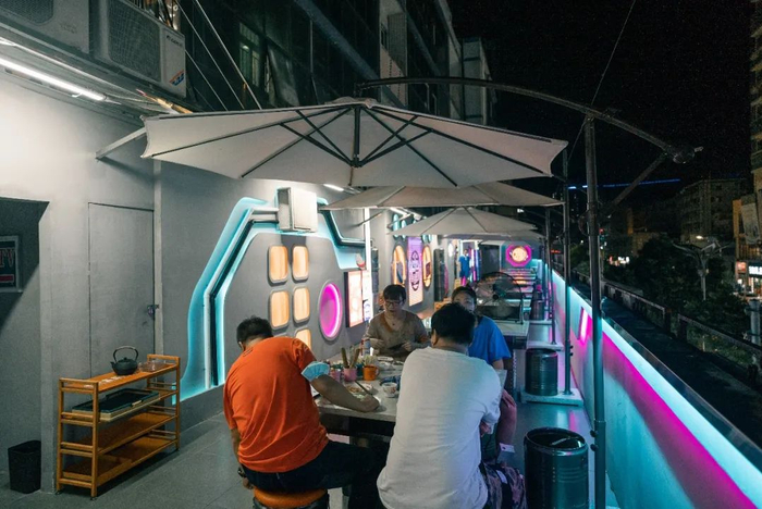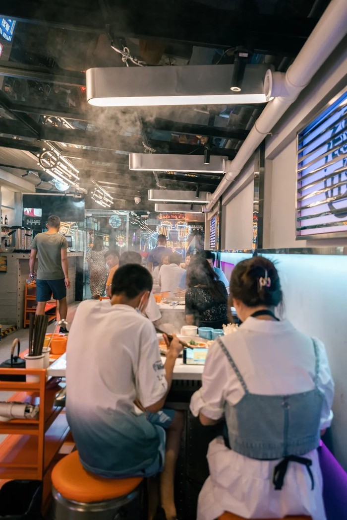 这家火锅店,有室内和天台室外两个区域。每一处的设计都是小心机,让人用餐的时候仿佛处于科技梦幻的空间,也超适合打卡拍照!