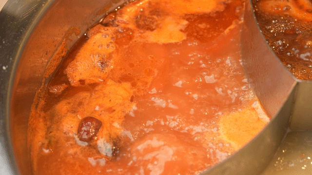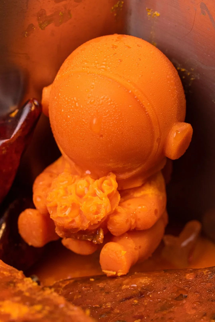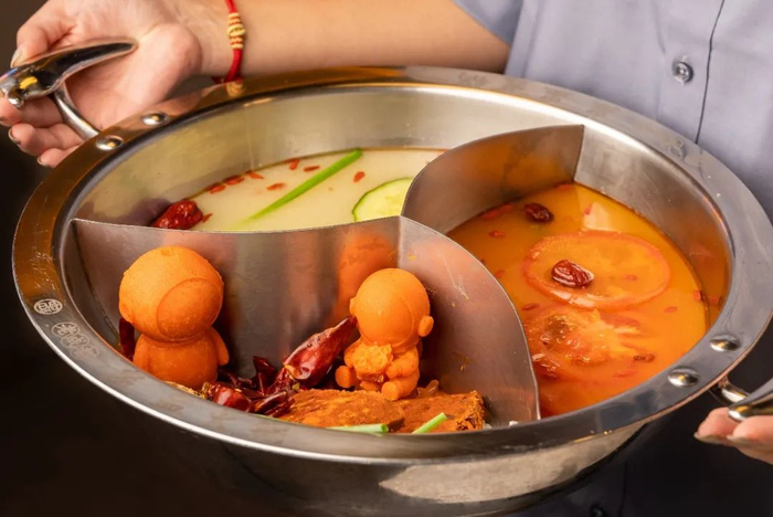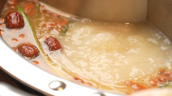 一款锅底包含3种口味,麻辣锅、番茄锅、骨汤锅!这个锅底一看就很“富”!麻辣锅里还有超可爱的宇航员牛油,这个小细节真的很难不爱!