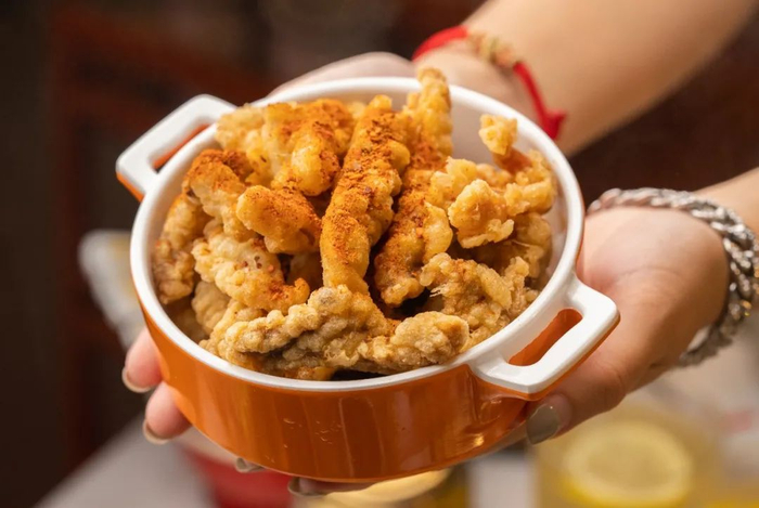 现点现炸的小酥肉也是成都的经典小吃之一,外皮炸至金黄酥脆,撒上一点秘制辣椒粉。一口一个,香到不行!内陷也不会很油腻!