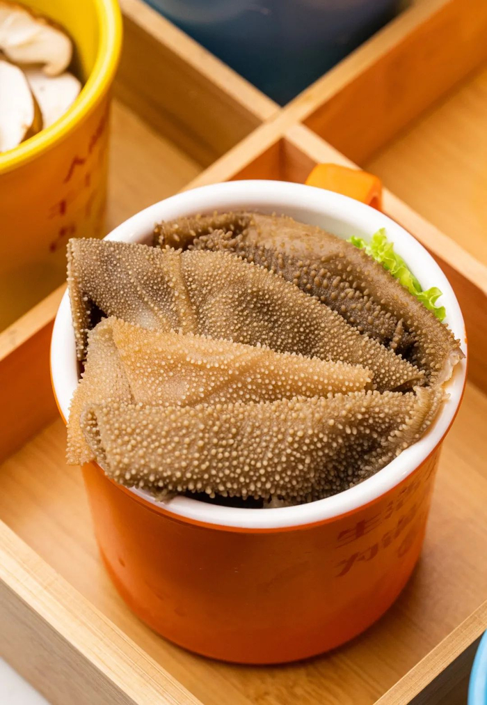 小小的杯子里装着满满的大片脆毛肚,片片都和我巴掌差不多大,采用七上八下标准涮法后,毛肚富有韧性,入口爽脆过瘾!