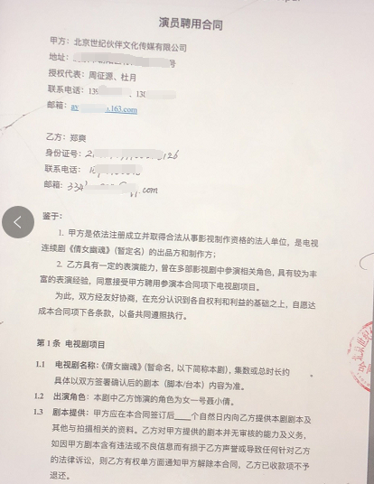 为了让片酬符合标准,杜月和周征源作为《倩女幽魂》的核心制片人,代表世纪伙伴与郑爽签了77天4800万的演员片酬合同。