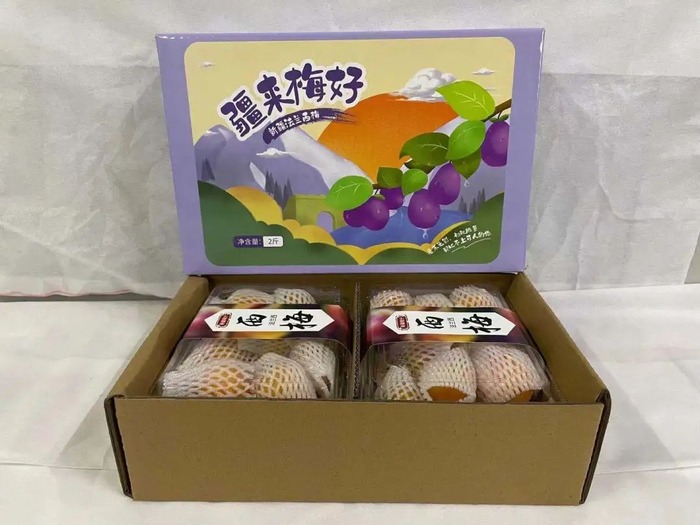 收货大多粗陋牛卡纸箱,大小不一,参差不齐酸甜口感,非常不符合新疆西梅的口感标准。