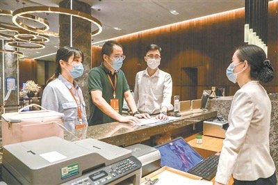 江苏省宜兴市纪委监委紧盯隐形变异“四风”问题,联合有关部门组成专项督查组到酒店、餐馆等处开展监督检查,通过调阅财务账册、消费明细、发票底单等查找有关线索,严查违规吃喝问题。图为近日,督查组在某酒店了解情况。褚亮 摄8月26日,中央纪委国家监委公布了今年7月全国查处违反中央八项规定精神问题汇总情况。其中,违规吃喝问题较为突出,共查处829起,位列查处享乐主义、奢靡之风问题总数第二位。而在今年已公布的中管干部处分通报里,也不止一次出现“违规接受公款宴请”“接受可能影响公正执行公务的宴请”等表述。
