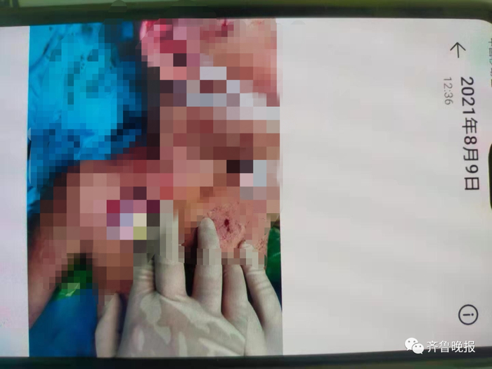 “孩子头皮被撕咬掉3块,眉头整个撕下一块,耳朵咬掉一部分,大腿被咬掉一块,脖子大腿腰部伤口都很深,后背也被咬伤。当时孩子满身是血,再晚一点孩子可能就活不了了……”