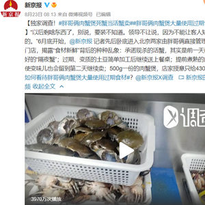新闻:近日,餐厅“胖哥俩肉蟹煲”被媒体暗访曝出“死蟹当活蟹卖”、“过期变质土豆二次加工后继续上桌”等一系列后厨乱象,引发网络热议。
