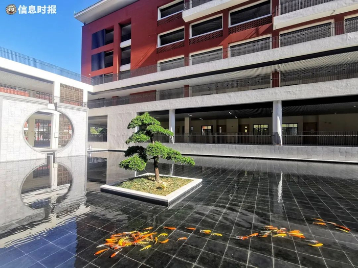 据了解,执信中学天河校区由华南理工大学建筑设计研究院何镜堂院士团队负责设计,按照“门启轴、水映山、廊连院”的总体设计理念进行布局。