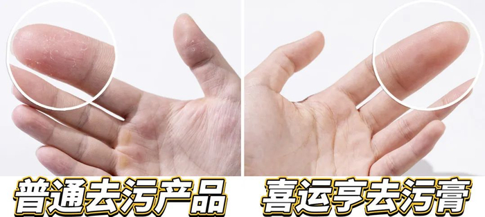 由于喜运亨的磨砂颗粒,可以让附着很久的油污都去掉,也能产生比较明显的泡沫,普通去污膏几乎看不到分解油污的泡沫。