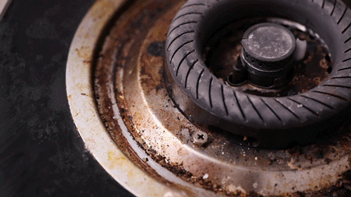 再接着把每天都要用的燃气炉灶处清理下,平时用的频繁,废油也积的很厚了,一些小缝隙里更难清洗。