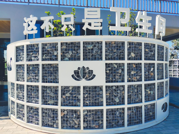 观景台与公厕相融合。这不只是公厕,是循环利用点、观景平台,更是网红打卡地。天鹅湖公厕充分利用建筑垃圾等废旧材料,将公厕做成了公共艺术设施,将现代创意设计与温柔乡愁记忆完美融合。
