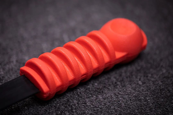它的握把符合人体工学设计,舒适乳胶握把捏上去摩擦力强,不会因为出汗而脱手。