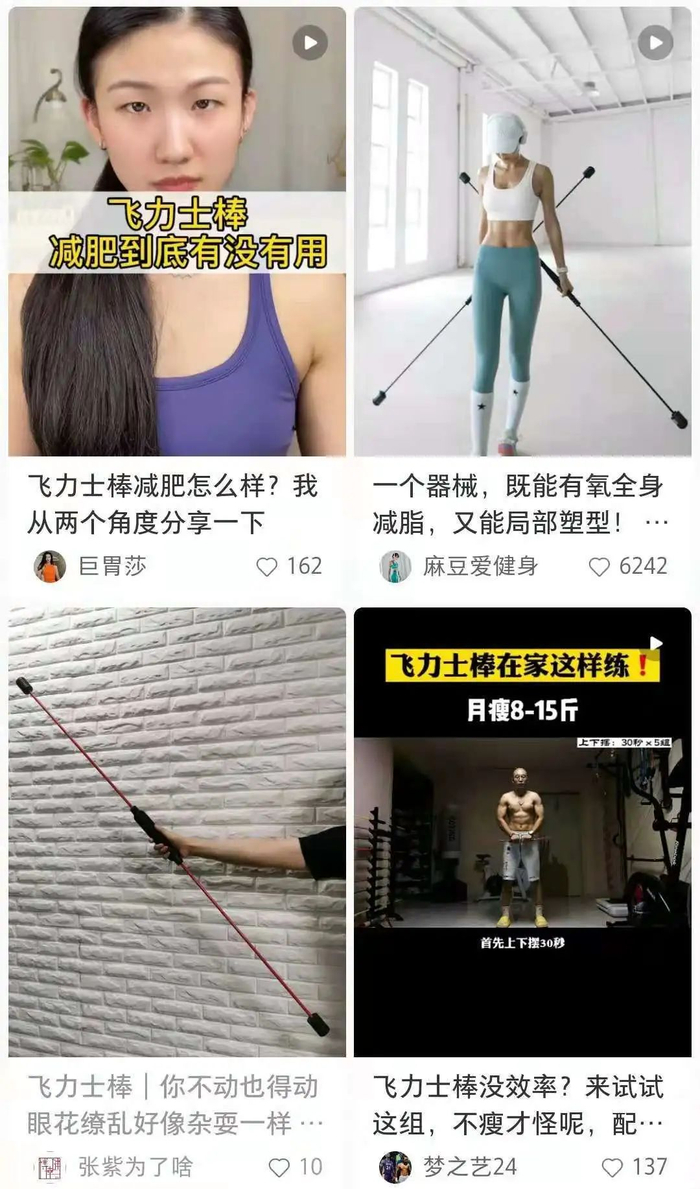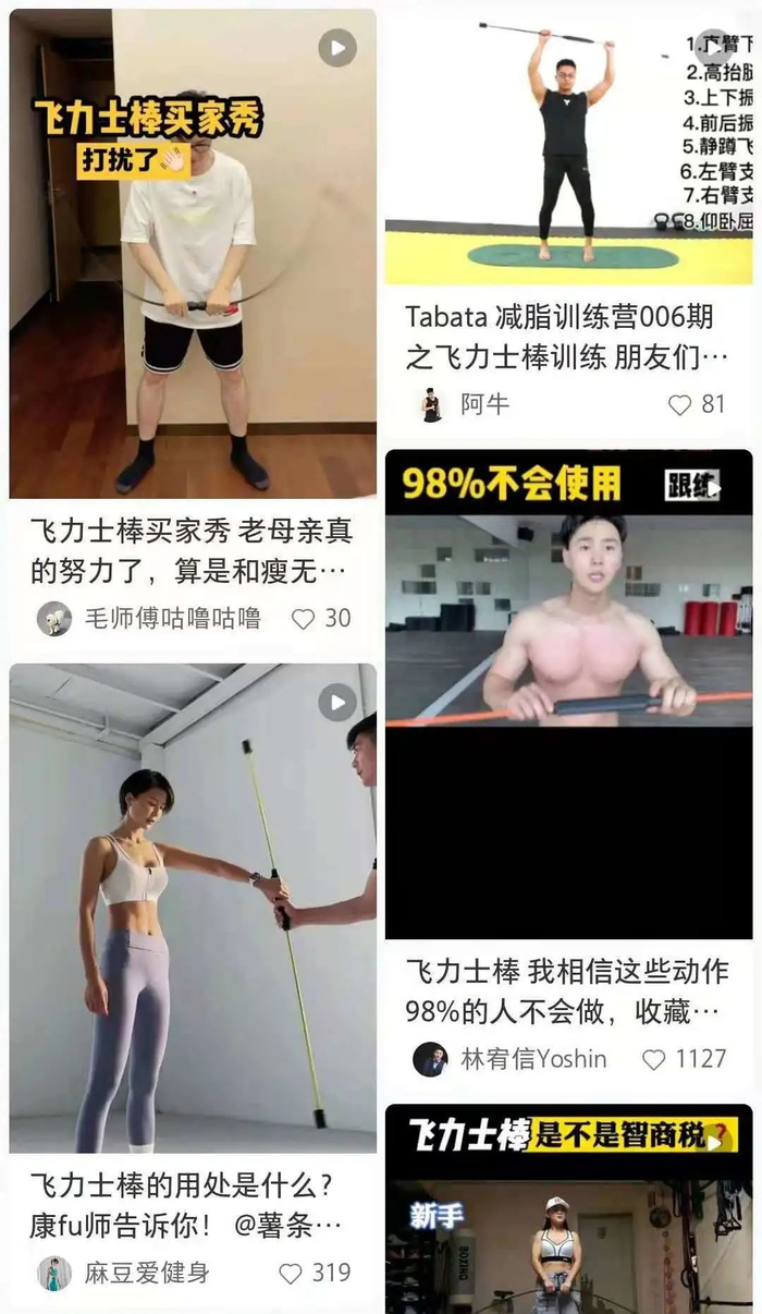 这种大家通常成为飞力士棒的健身棒,在小红书早就火了,有一大堆教程,新手选它完全能搞定。