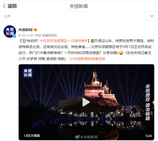 霸天虎过山车、侏罗纪世界大冒险、哈利波特禁忌之旅,还有各式纪念品、特色美食……北京环球度假区将于9月1日正式开启试运行,热门打卡景点都有啥?一天时间如何高效游园?分享攻略总台央视记者王小节 许梦哲 何畅 袁成刚 杨凯)