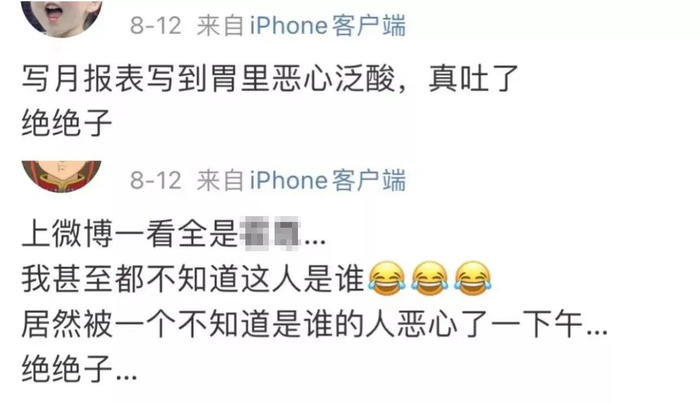 他们描述极端的无奈和讨厌,同样会使用“绝绝子”。