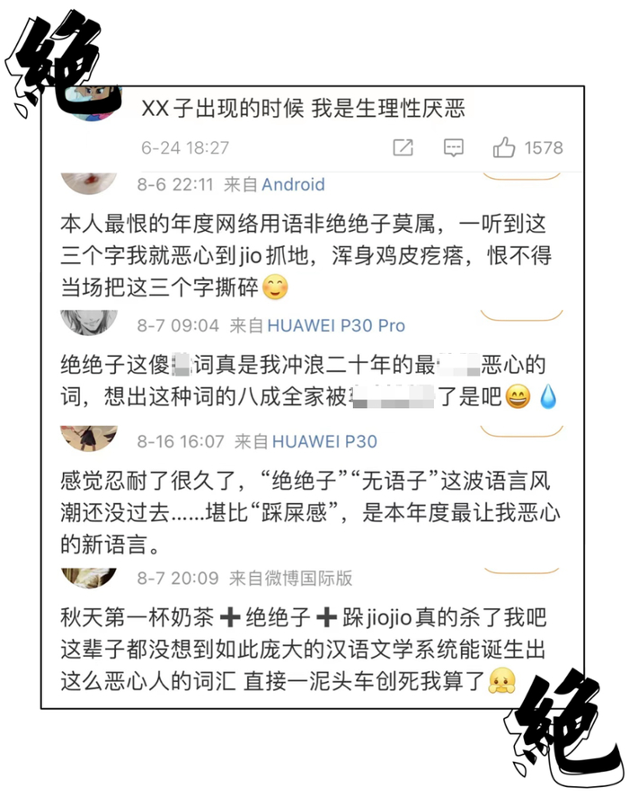 另一方面,以“绝绝子”为代表的新式网络热词引起了很多人的空前反感。