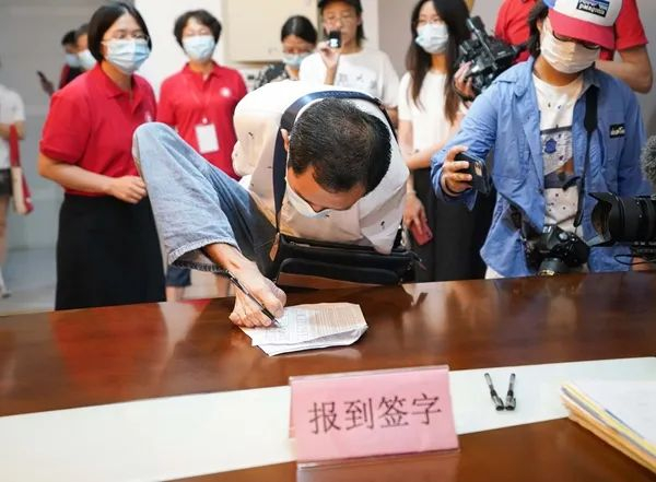 昨天(29日)是同济大学2021级新生报到的日子。现场,一位来自四川攀枝花的同学格外引人注目,他没有双臂,却”行动自如“——只见他抬起脚来,用脚签字,在接受体温测试、出示随申码和行程码、将进校码查验通过后,还来到四平路校区新体育馆内接受核酸检测采样。这是同济大学新生来校报到必须首先完成的一套防疫规定动作,他还和其他同学一样,完成全部流程。他就是被评为“全国大学生自强之星标兵” 的彭超,正式成为同济法学院硕士生。