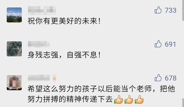 令人感动的一个场面出现在今年3月底,同济大学研究生复试的考场上:当时,同济大学法学院教师正在认真进行研究生复试资格审核。一位穿身白色运动服的瘦高个子男生彭超戴着口罩走到老师们面前,轻声问道:” 老师,下午的笔试,可以为我安排两个硬一点的凳子吗?我没有双臂,需要用脚写字。”来人正是彭超。老师发现,这名考生没有双臂。
