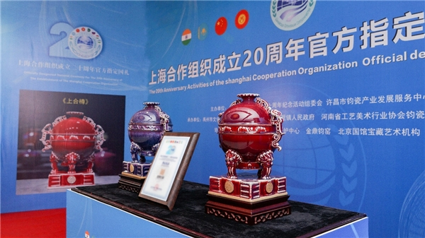 8月30日上午,上海合作组织成立20周年官方指定国礼《上合樽》启运仪式在千年钧瓷发源地——禹州神垕隆重举行。上海合作组织成立20周年官方指定国礼启运仪式由上海合作组织成立二十周年纪念活动组委会、许昌市钧瓷产业发展服务中心主办,由禹州市文化改革发展试验区管理办公室、神垕镇人民政府、河南省工艺美术行业协会钧瓷艺术工作委员会承办,由禹州市非物质文化遗产保护中心、金鼎钧窑、北京国馆宝藏艺术机构共同协办。许昌市钧瓷产业发展服务中心主任牛艳伟,许昌市钧瓷产业发展服务中心副主任、禹州市钧官窑址博物馆馆长张金伟,河南省陶瓷艺术大师高丙建,北京国馆宝藏艺术机构总经理刘长山先生等多位领导嘉宾以及河南省数十家媒体共同出席,共襄盛举,见证上合组织官方指定国礼《上合樽》、官方指定礼品《上合杯》荣耀启运。