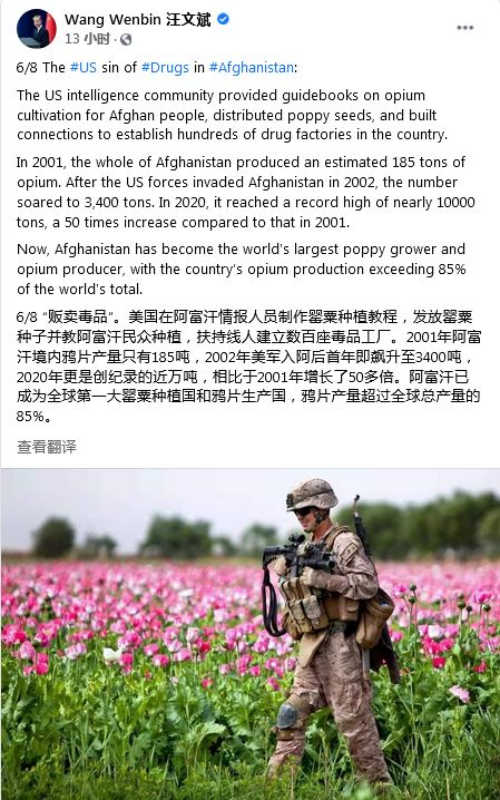 然而,对于同样种植毒品的阿富汗国内亲美势力,美国却发挥传统艺能——双标。