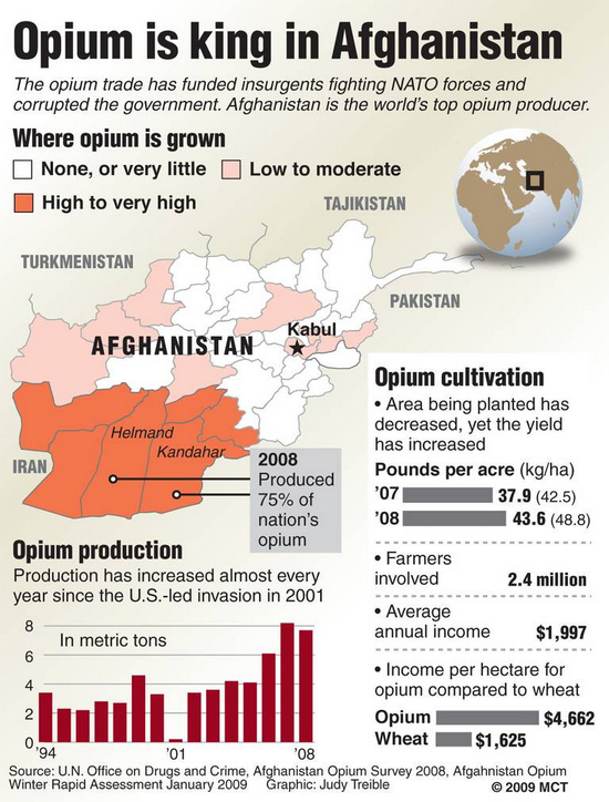 这项政策得到了阿富汗当地部族的积极响应,越来越多的鸦片、大麻种植地出现在阿富汗贫瘠的土地上。
