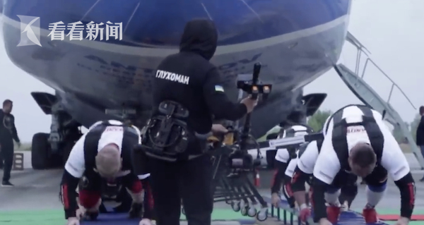 视频|创造纪录!乌克兰8名大力士拖动世界最大运输机