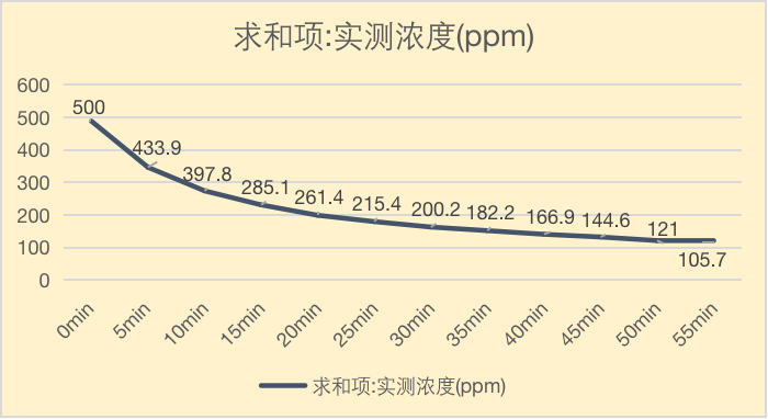 将所有数据绘制成表,我们可以看到在1小时内,新增的甲醛几乎被清除干净。