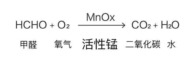 从化学公式上看,活性锰中的活性羟基与甲醛反应后可以分解为水和二氧化碳后。