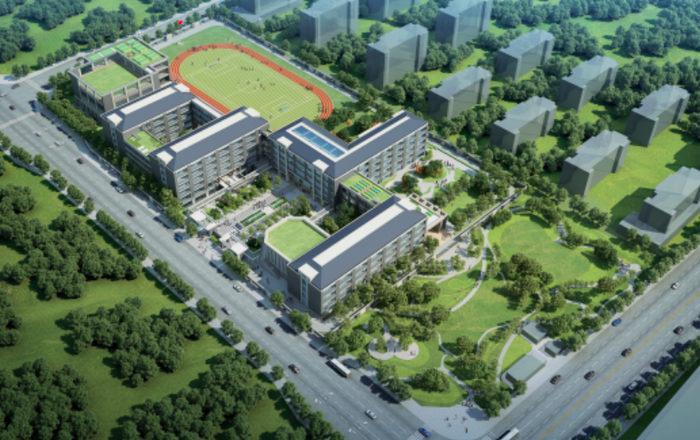 校园包括36班九年一贯制(小学24班、初中12班)和30班高中,其中小学学位960个,初中学位480个,高中学位1350个,共计提供2790个学位。北大附中石景山学校(新址)预计2023年完工。