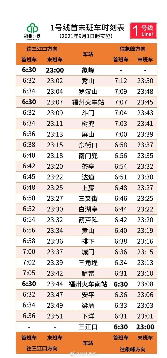 请乘客们注意,9月1日起,福州地铁运行时间有新调整: