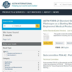由上海松力生物技术有限公司首次主导制定的ASTM(美国试验材料协会)国际标准《ASTM F 3515-21 标准指南猪源纤维蛋白原作为生物医学和组织工程医疗产品应用的起始材料的特性和测试》8月1日正式由ASTM国际发布。