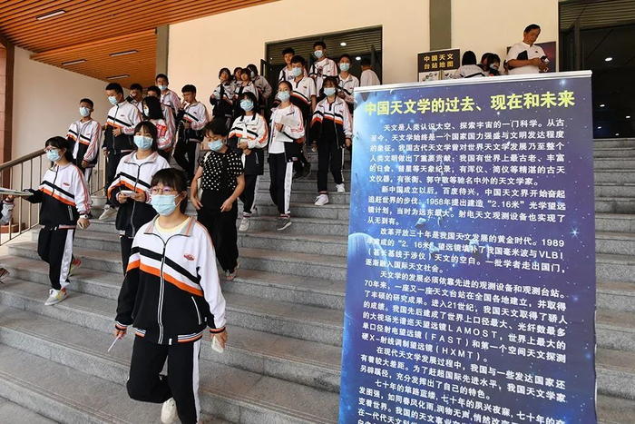 这次科普课还准备有FAST先导阵模型、天文望远镜供学生参观与体验,并创新开启“线上、线下”双课堂模式,网友们可通过多彩贵州网官方微博、科普中国.贵州版平台观看开学科普第一课。
