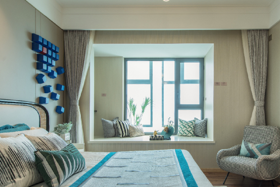 主卧附带全景飘窗,每一个日升月落,见证了窗前的惬意悠闲。