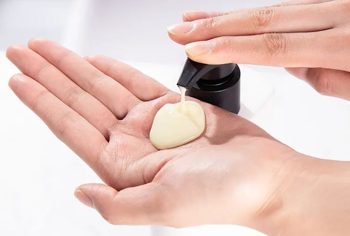 挤出来,膏体是浅浅的鹅黄色,流动性很好,像我这种中长发量,两泵就够用了。