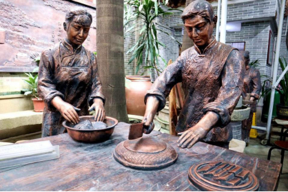 铜像雕塑还原了伦教糕的制作过程
